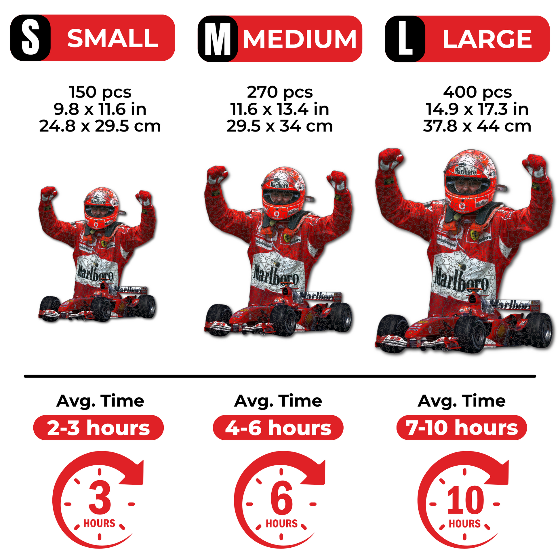 Relive the adrenaline and celebrate Michael Schumacher with this incredible F1 Wooden Puzzle!