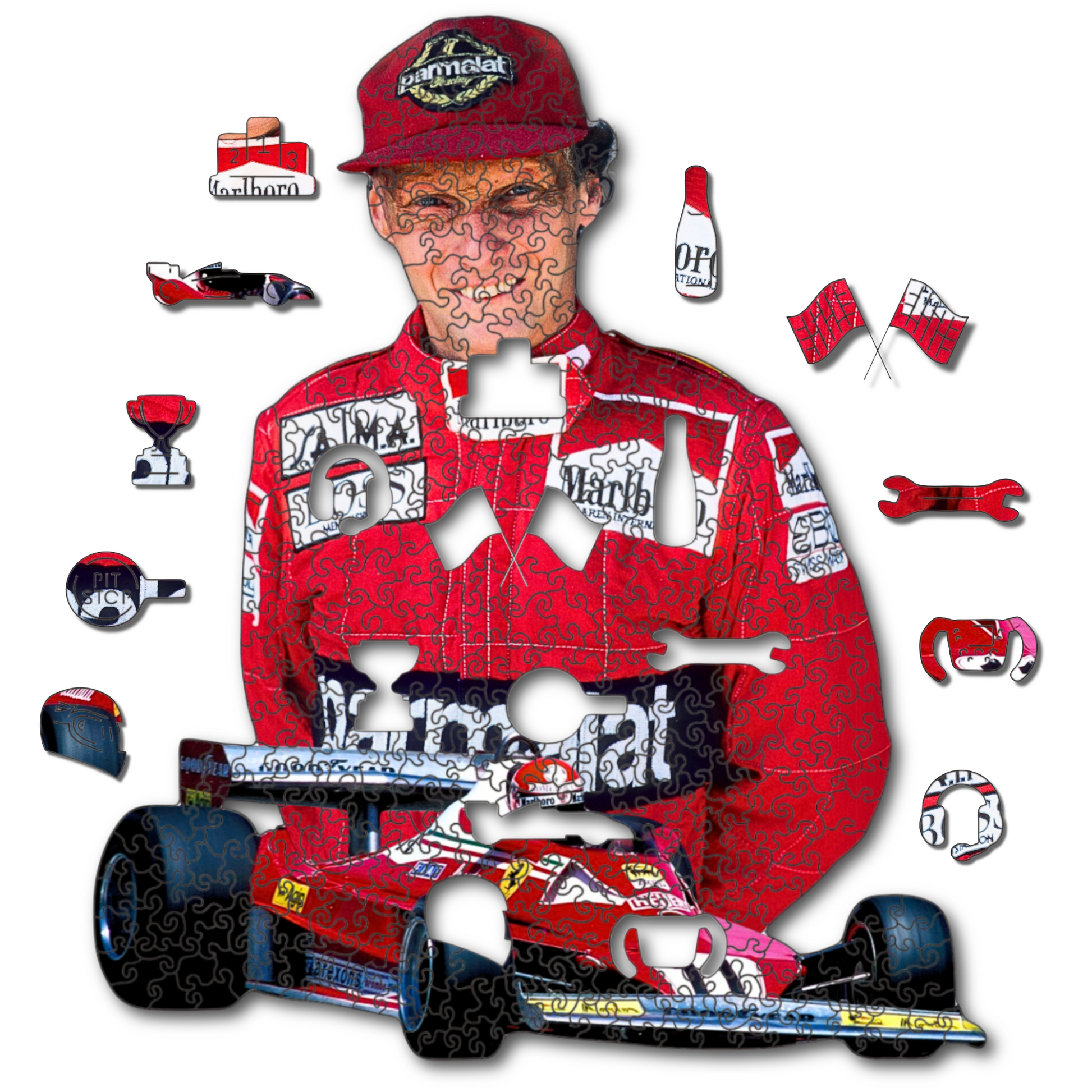 Relive the adrenaline and celebrate Niki Lauda with this incredible F1 Wooden Puzzle!